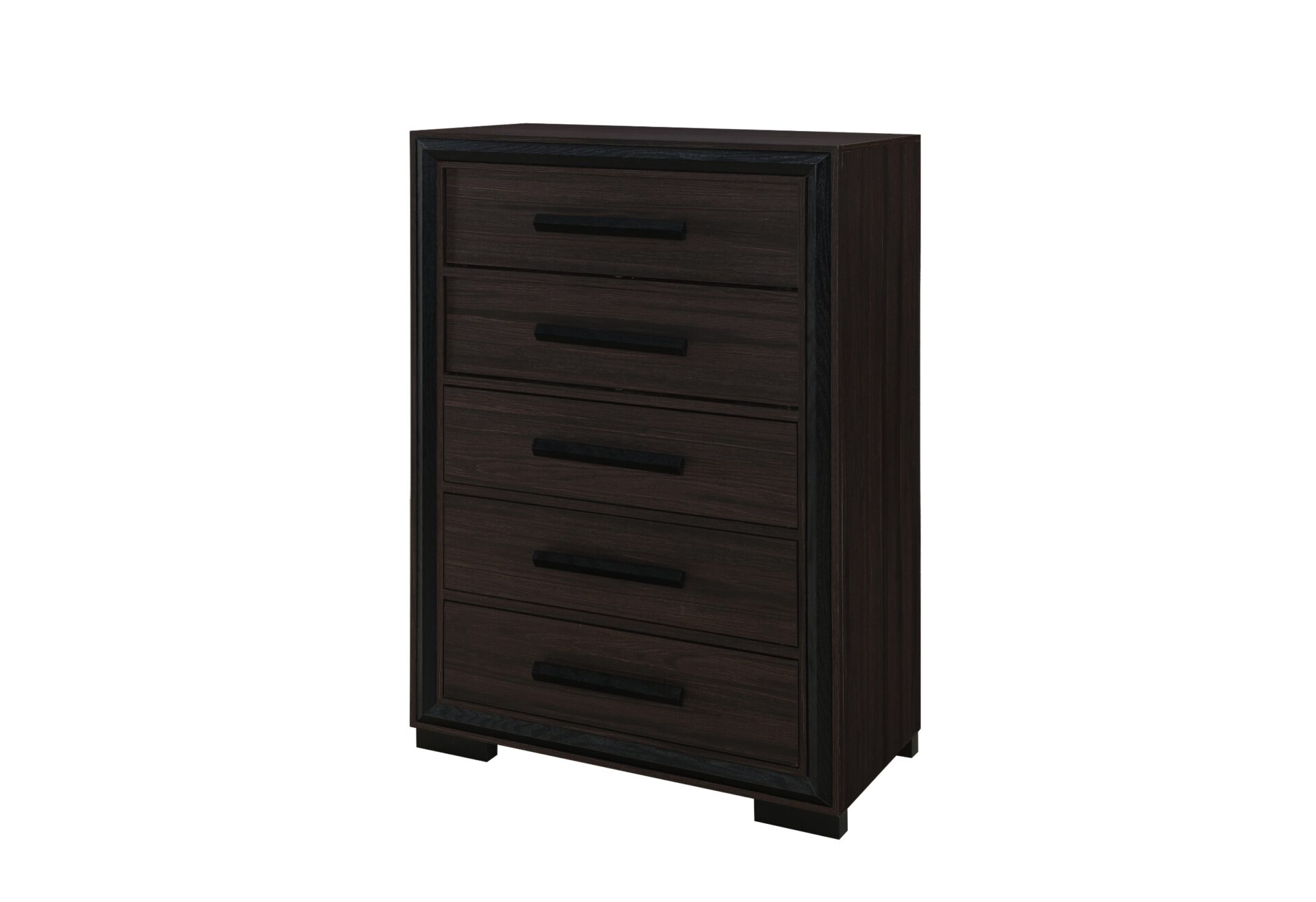 The Amelia Chest by Global Furniture USA epitomizes vertical storage sophistication. This tall chest is a space-saving marvel, offering generous storage within its drawers without sacrificing style. Like the other pieces in the collection, it features the eye-catching brown finish and black accent trim that define the Amelia line. The sleek black drawer pulls ensure seamless operation and contribute to the chest’s sleek appearance. Whether storing sweaters, linens, or accessories, the Amelia Chest is an ideal solution for maintaining an organized and elegant bedroom.Â