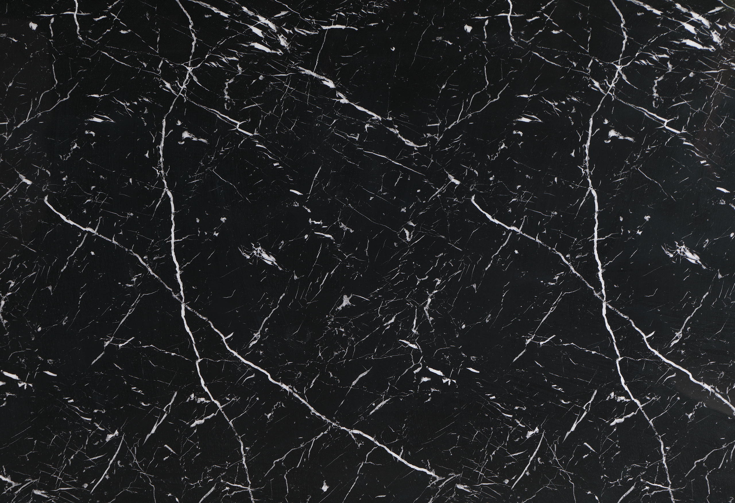 Black Faux marble design with an extra thick top and a double pedestal base with silver connectors. The chairs and channel backed and the legs match the color of the base.
