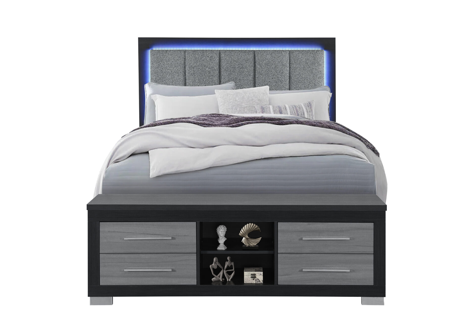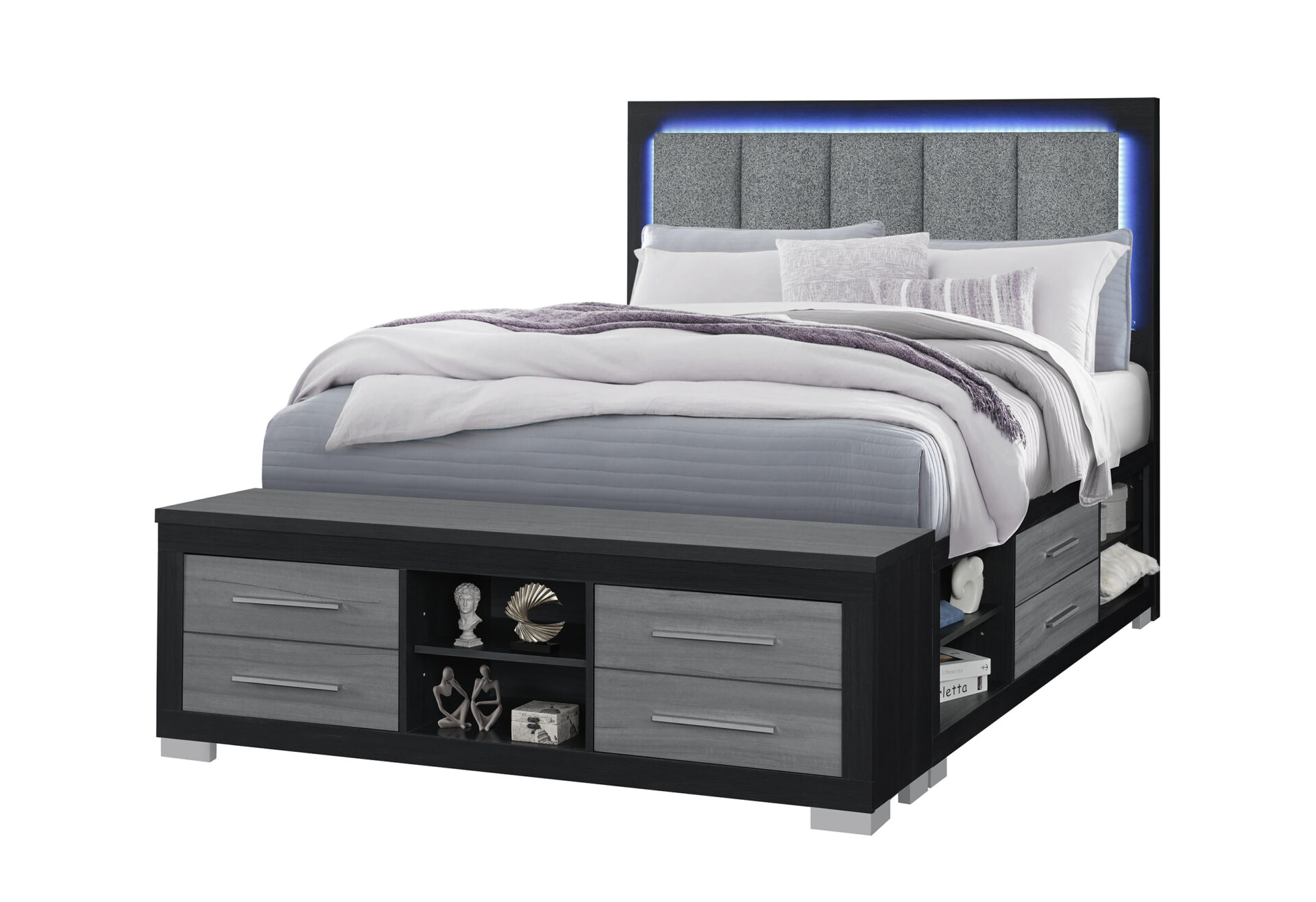 EMMA BLACK/GREY QUEEN BED WITH LED AND USB