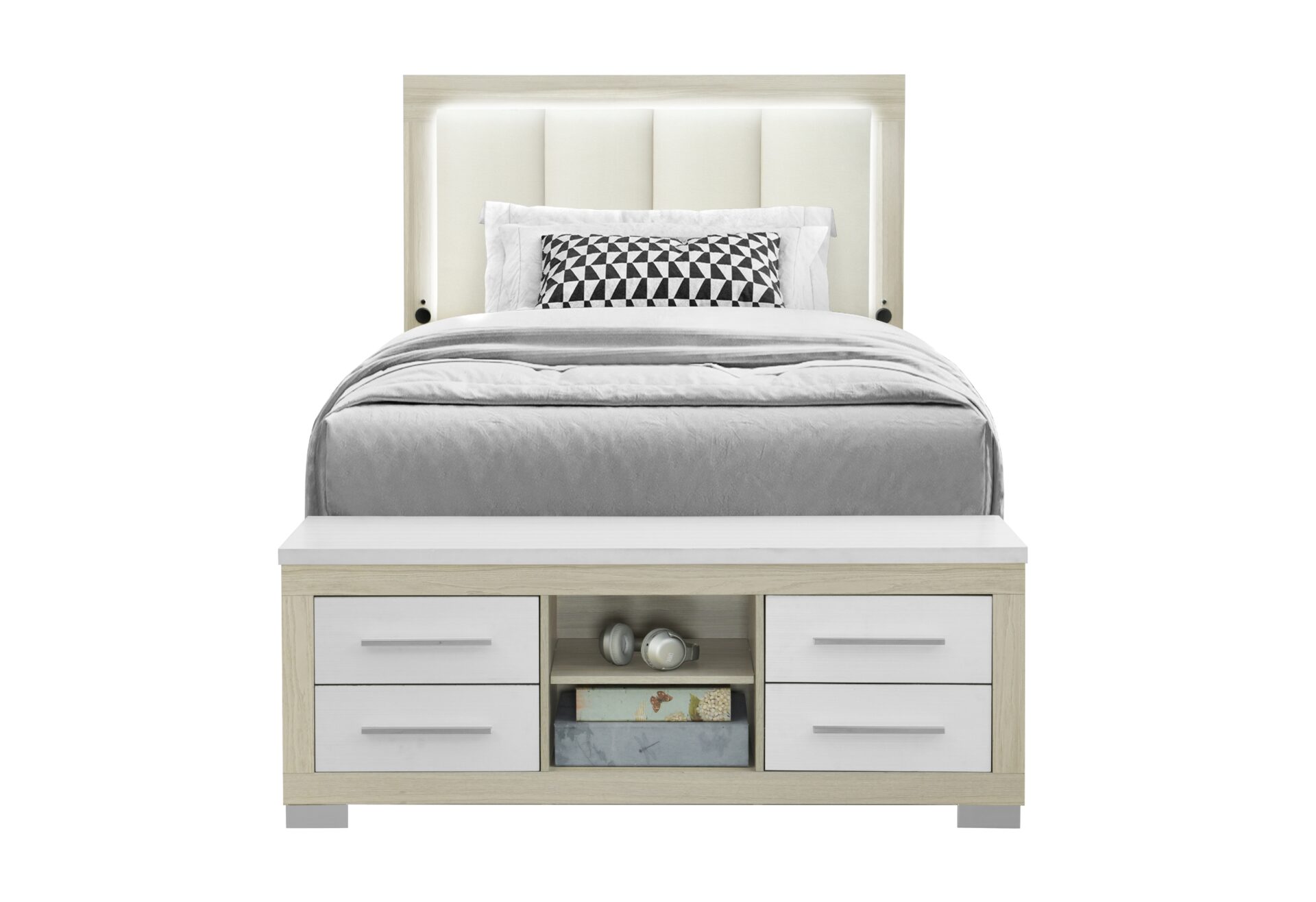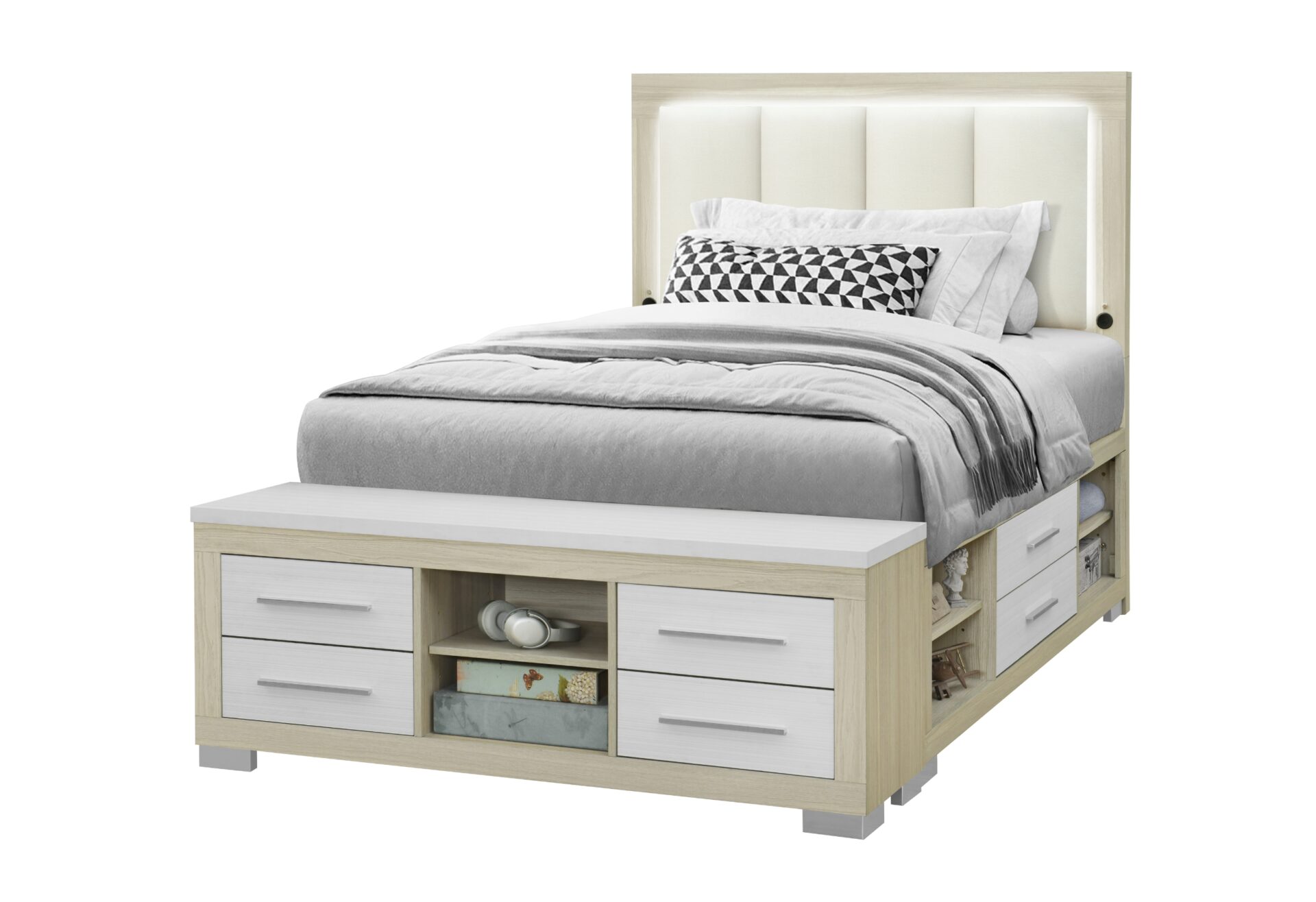 EMMA NATURAL/WHITE FULL BED WITH LED AND USB