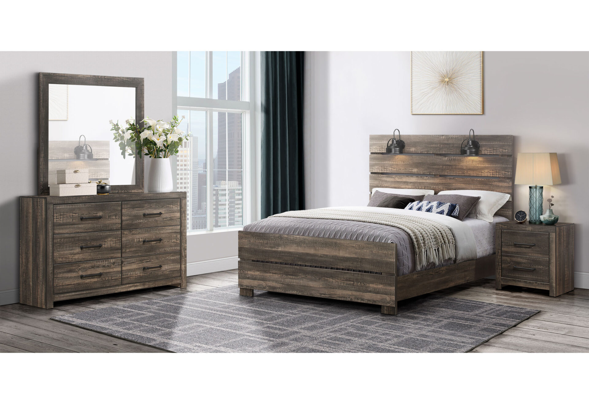 LINWOOD DARK OAK QUEEN BED GROUP WITH LAMPS