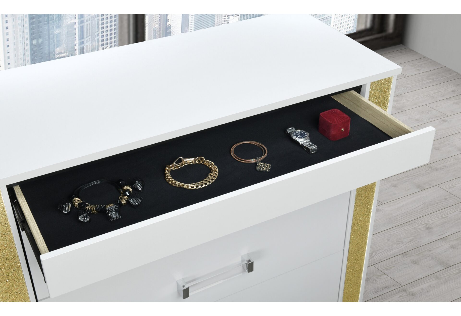 Introducing the Nolan Collection from Global Furniture USA, a stylish and versatile addition to any bedroom. Each piece in this elegant collection has been made from high-quality wood and finished in a sleek grey tones to give it a sophisticated look. Stylishly designed, the case pieces offer ample space for storing all kinds of things.