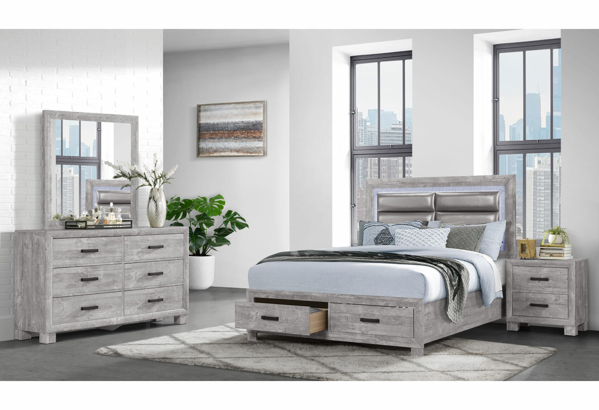 Introducing the Nolan Collection from Global Furniture USA, a stylish and versatile addition to any bedroom. Each piece in this elegant collection has been made from high-quality wood and finished in a sleek grey tones to give it a sophisticated look. Stylishly designed, the case pieces offer ample space for storing all kinds of things.
