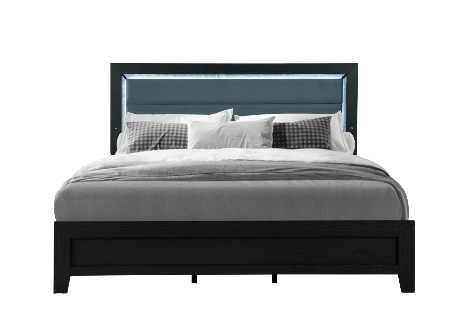 Introducing the Reid Bedroom Collection by Global Furniture USA, featuring a sleek black wood finish with glamorous accents on the mirror and bed. The collection exudes modern sophistication and elegance, perfect for elevating any bedroom decor.