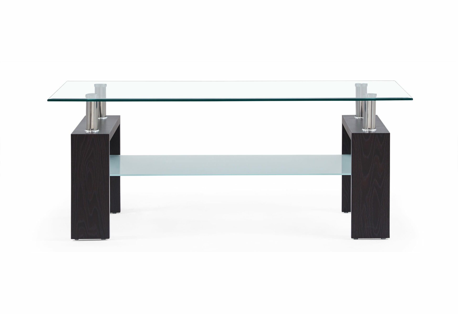 Featuring a clear tempered glass table top and dark walnut legs, this table looks amazing. Contemporary in style and versatile enough for many room settings, this piece is simply a must have for your living space.