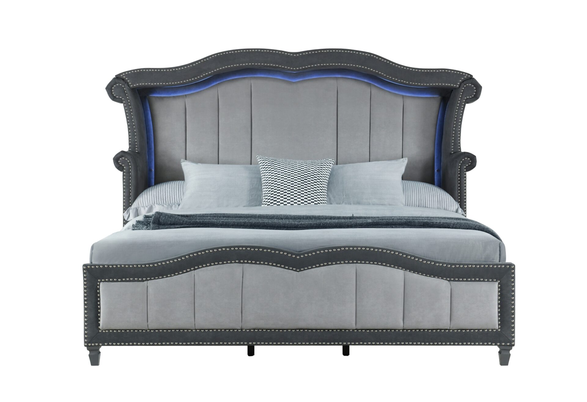 VANNA DARK GREY KING BED HEADBOARD WITH LED, SLATS AND WING