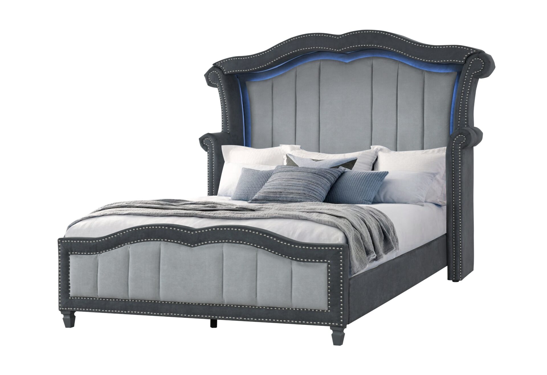 VANNA DARK GREY QUEEN BED HEADBOARD WITH LED, SLATS AND WING