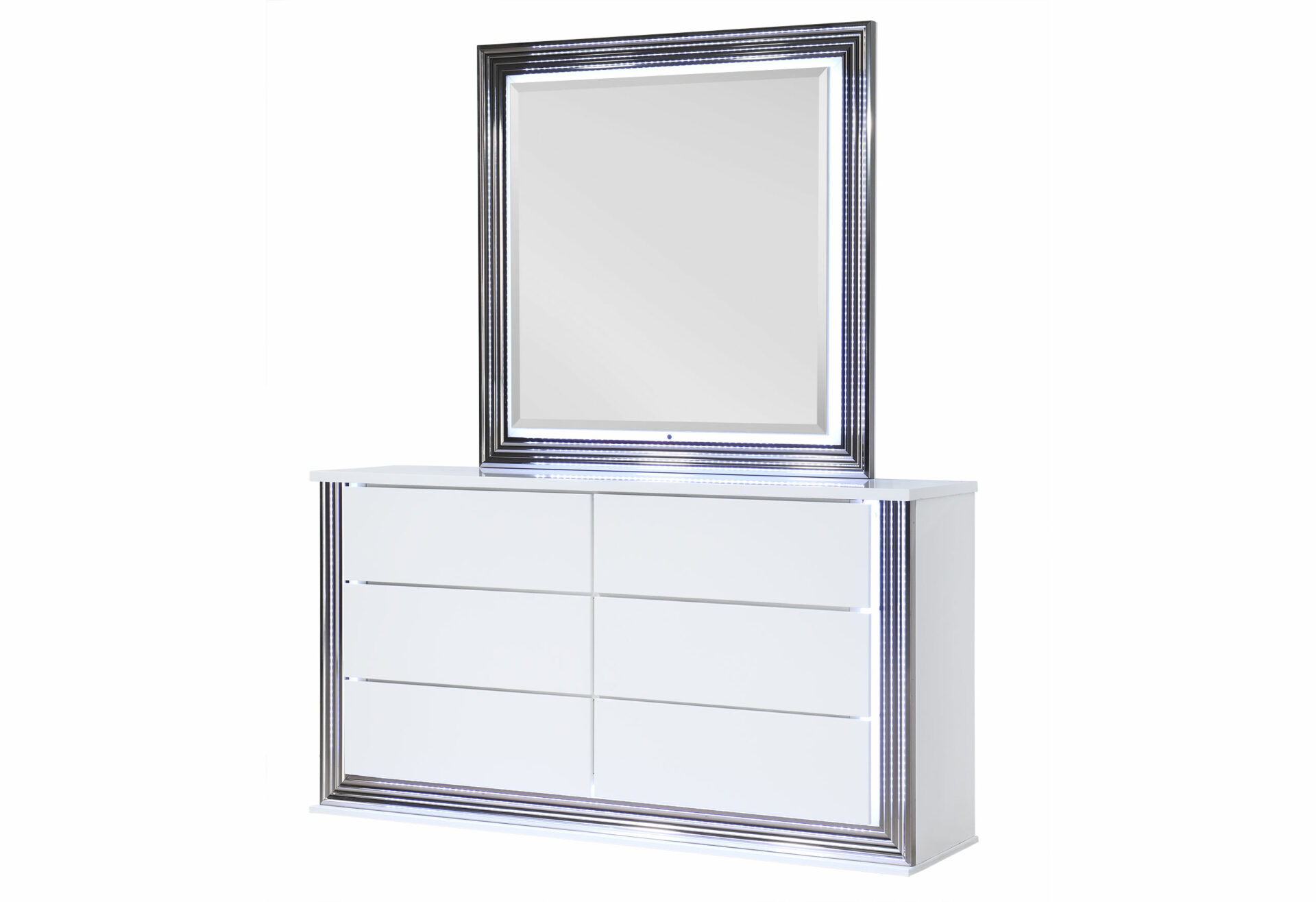 Introducing the Ylime Collection by Global Furniture USA – a stunning addition to any bedroom. Crafted with a sleek, deco modern design, this collection features rich chrome accents on all pieces and LED accent lighting. The real showstopper is the LED accents that add a touch of luxury and sophistication to the overall look. An available large matching vanity with stool makes this one of the most accommodating, complete solutions for your bedroom.
