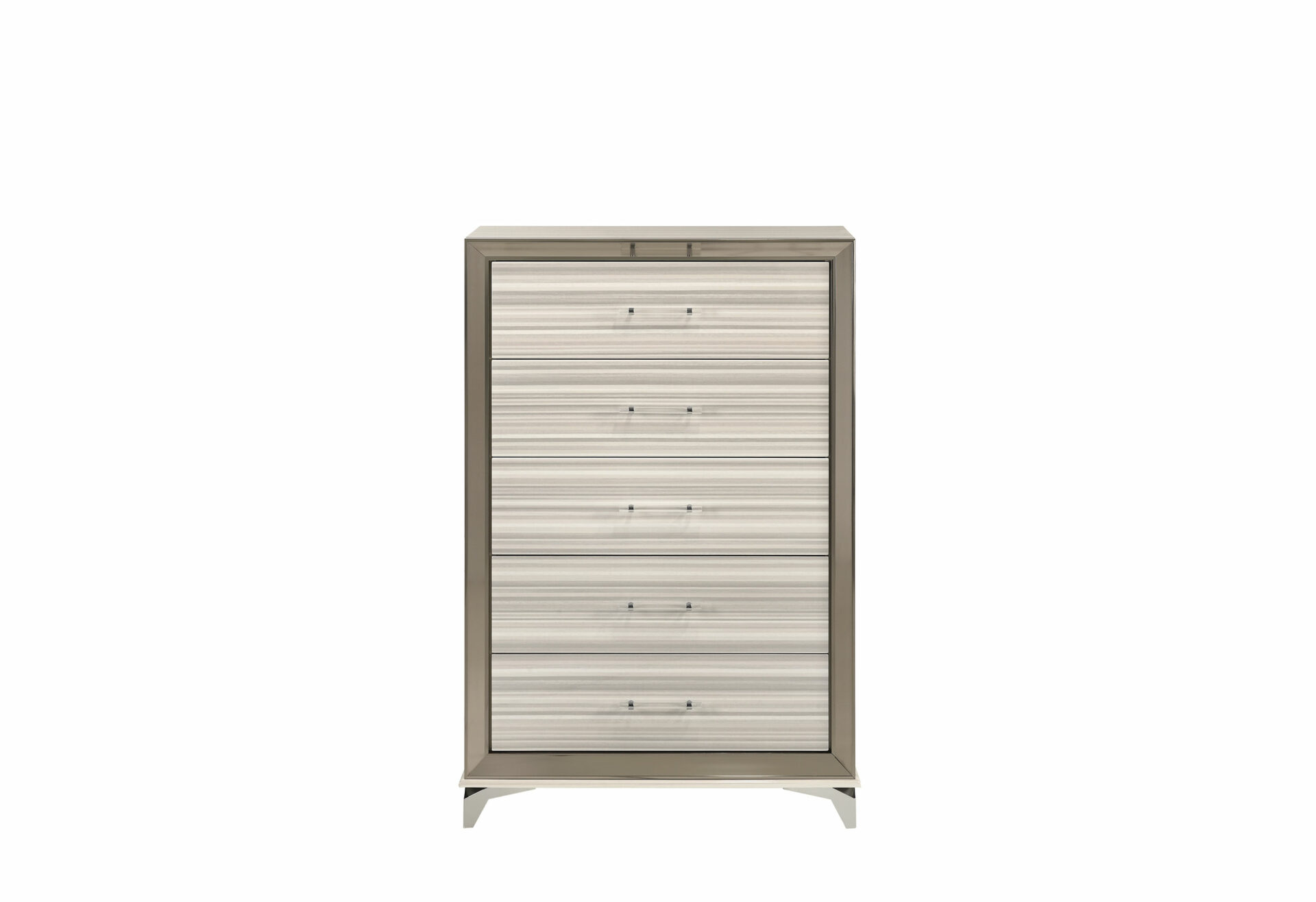 The Zambrano White Collection exudes sophistication and modern charm. Its sleek design, pristine white finish, and polished chrome accents create a luxurious, inviting atmosphere. The spacious storage and built-in LED lights add functionality, making it a perfect blend of style and practicality. A stunning addition to any contemporary bedroom, the Zambrano is a must-have for those seeking both elegance and comfort.