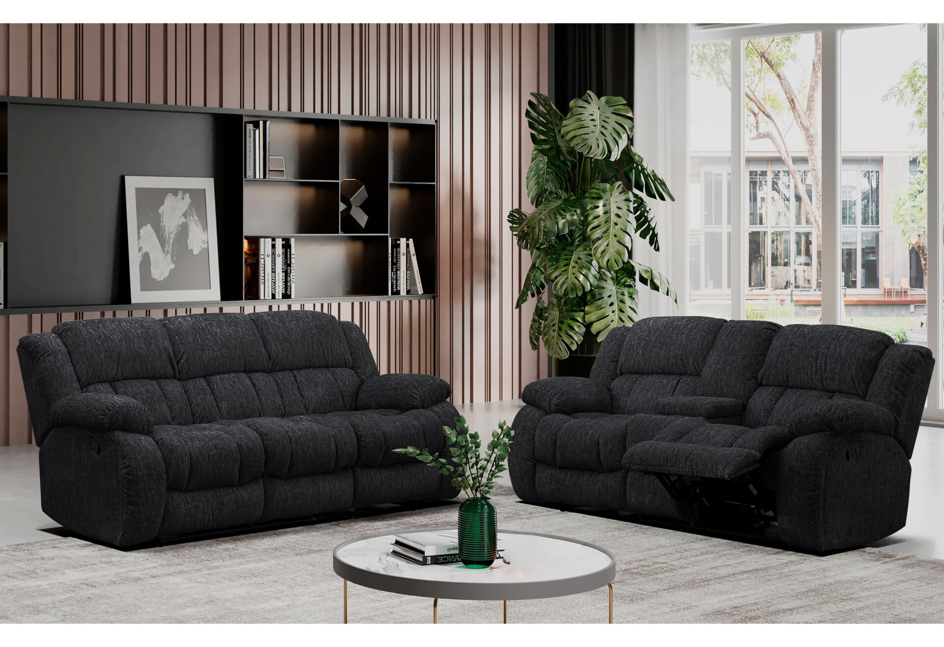 Enhance your living room with the U8517 collection by Global Furniture USA. An elegant living room set finished in easy-to-care charcoal fabric, and generously stuffed for additional comfort this set is designed for maximum relaxation. The reclining feature provides unmatched comfort and support, while the set is expertly crafted with high-quality materials to ensure durability and longevity. Providing you with ultimate relaxation after a long day, this stylish and functional set is a great way to update your living space.
