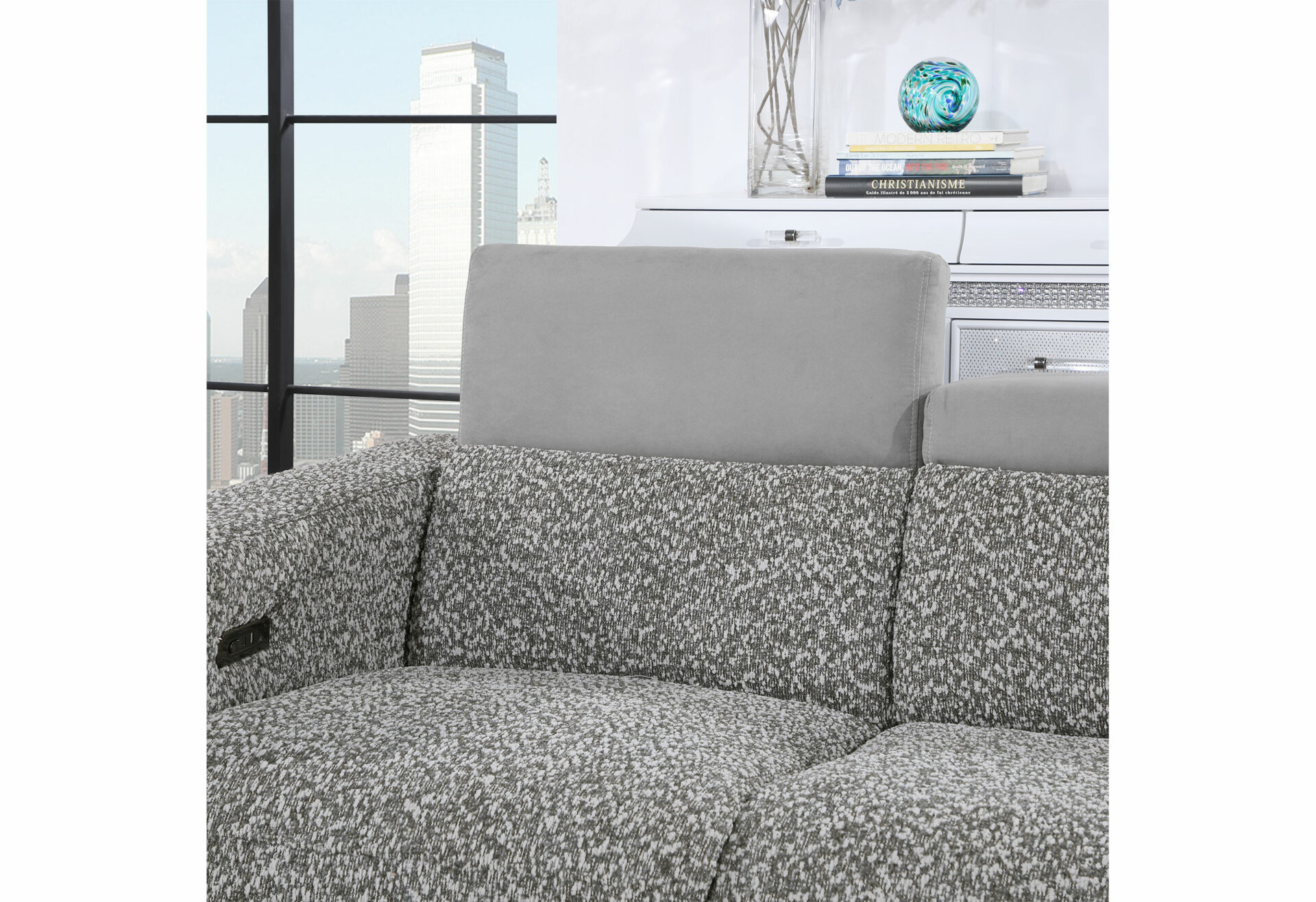 The U8521 Sofa is a centerpiece of comfort and sophistication. Its ample seating is equipped with power recline and USB ports, ensuring every moment of your leisure time is met with ease. The two-tone finish adds a touch of modern flair, while the adjustable ratchet headrests invite you to unwind in customized comfort. Perfect for any contemporary living room, this sofa is more than furniture; it’s a retreat.
